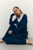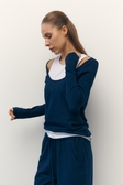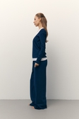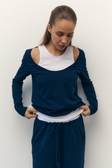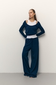 Комплект виконаний з плотного трикотажу, що добре тримає форму, приємний до тіла і зносостійкий. Ми поєднали синій трикотаж з білим, аби додати акцентів у комплект і також зімітували майку, але лонгслів цільний, довжина лонгсліву 55 см. Штани з акцентним поясом, ми використали мʼяку резинку, що не буде передавлювати лінію талії, а також додали завʼязки для додаткового регулювання обʼєму. Довжина штанів може бути 100, 105 або 110 см на вибір (довжину штанів краще проміряти індивідуально, від талії і до низу). Також можемо відшити меншу або ж більшу довжину, просто вкажи це у коментарях в Кошику при оформлені замовлення 🙂