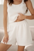 Комплект з щільної, пухнастої тканини. Тканина добре зберігає тепло, не парить, гіпоалергенна. Ідеально підійде для холодної пори, забезпечить вас комфортом в будь-яку температуру вдома. Довжина кардигану 110-120 см. Шорти на цупкій резинці, так як тканина плотна.Довжина шортів 35 см. Майка базового крою. Довжина майки 50 см.