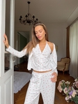 Сет з італійської бавовняної пряжі. Мʼяка тканина, що тримає форму, не розтягується і не скочується. Зносостійка і приємна до тіла. Подвійний кардиган, що складається з нижньої майки і кардигану на гудзиках зверху, обидва елементи зшиті разом і є цільним виробом. Довжина кардигану 50 смШтани на мʼякій резинці, оздоблені декоративним кантом і мʼякою білизняною резинкою. Довжина штанів можлива 100, 105 або 110 (довжину штанів краще проміряти індивідуально від талії і до низу), якщо потрібна менша або більша довжина просто вкажи це у коментарях в Кошику під час оформлення замовлення.