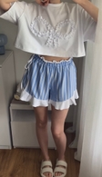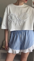 Комплект з футболки з бантиком і шортами з рюшами. Лонгслів виконаний з бавовни найвищої якості плетіння. 95% бавовна, 5% еластан. Бантик виконаний вручну нашими майстринями. Довжина лонгсліву 50 см. Шорти зі 100% бавовни,з рюшами, що виконані з тканини що і футболка. З акцентною завʼязкою збоку. Мʼяка і тонка резинка на талії для комфортного сну і відпочинку. Довжина шортів 35 см.